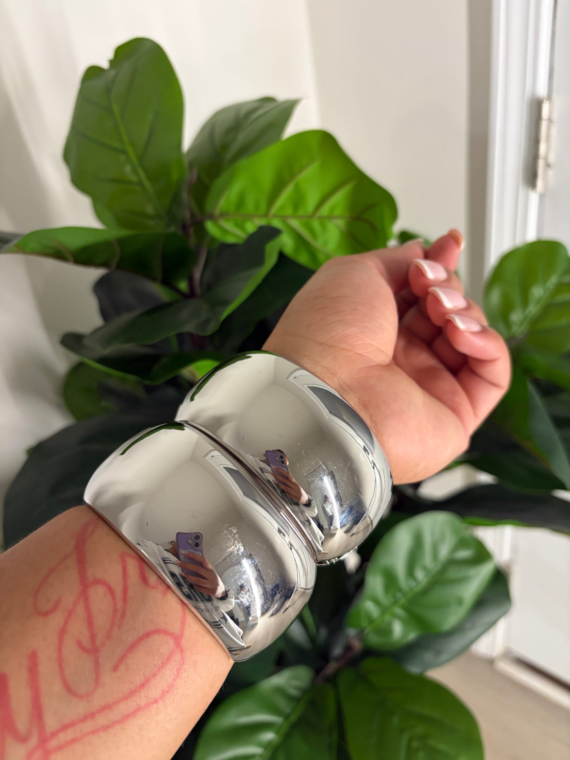 Elevate your look with the Luxe Dome Cuff Bracelet. This bold statement cuff features a sleek, high-shine dome design that instantly adds a touch of luxury to any outfit. Perfect for dressing up a simple look or stacking for a more dramatic style.